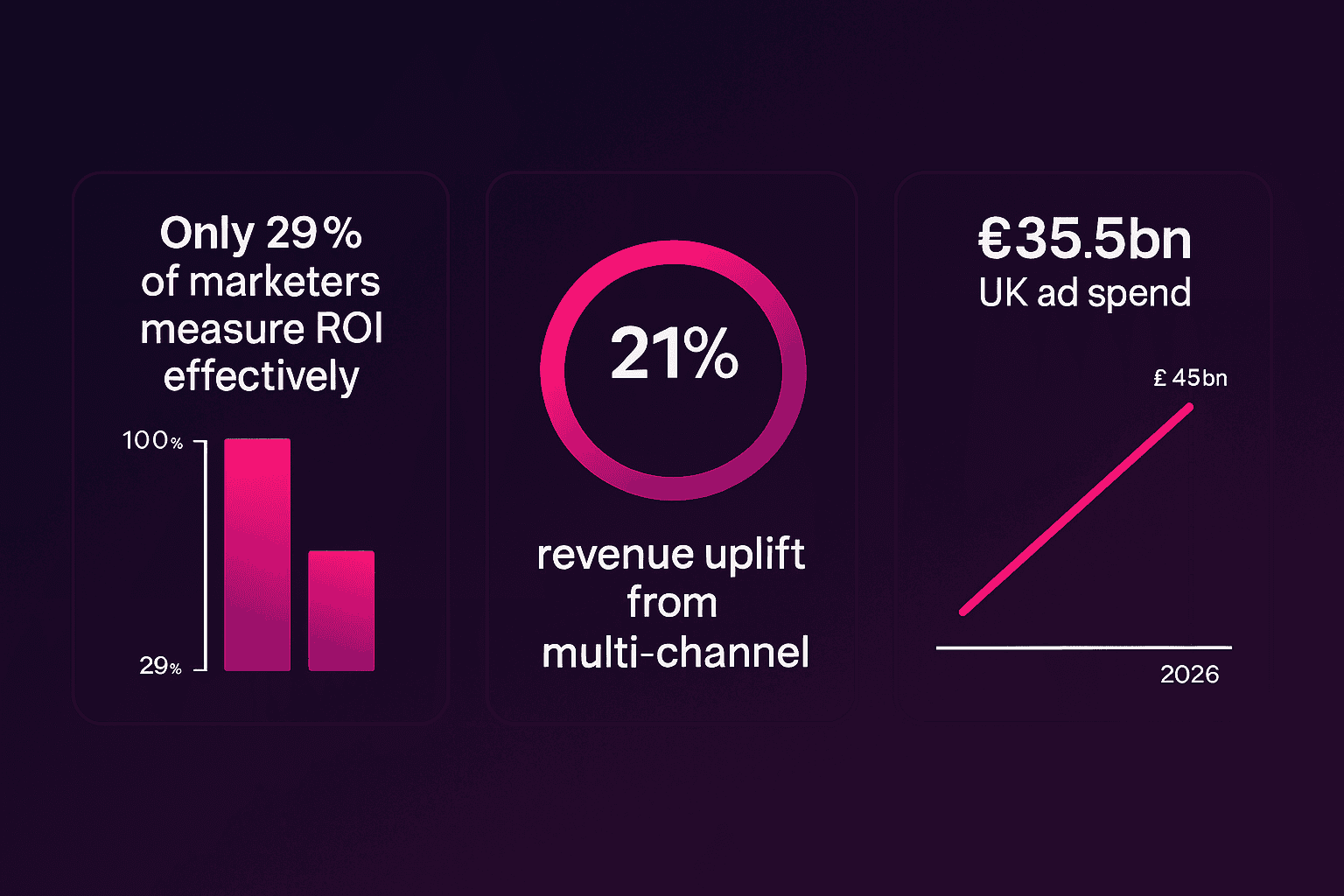 UK digital ad spend hit £35.5 billion in 2024, and forecasts put it at £45 billion by 2026 (IAB UK). On paper, investment is rising. But many SMEs remain under pressure, with profitability, staffing, and rising costs still cited as leading concerns.
